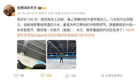 手機螢幕上,金博洋剛結束冰上訓練的照片還在發燙——他寫「身上蒸騰的熱氣都帶著勁兒」,我盯著那縈繞的白霧出神,手邊的拿鐵早已涼透。紐約凌晨三點,窗外飄著雪,我第17次點開某視頻平台的冬奧專題,畫面再次卡在「僅限中國大陸播放」的灰色提示框。