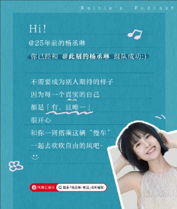 手機震動時,我正擠在紐約地鐵的晚高峰人潮裏。螢幕上彈出楊丞琳那條播客邀請——『帶上被忽略的感受,來播客裏和解吧』。耳機裏恰好放著她十年前的《曖昧》,車廂搖搖晃晃的,我突然想起高中時偷用MP3聽她歌的下午,班主任的腳步聲從走廊盡頭傳來,我手忙腳亂藏耳機的瞬間,耳機線纏住了校服拉鍊,扯得脖子生疼。