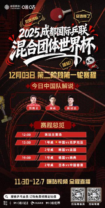 最近成都混團世界杯打得火熱,尤其是國乒的比賽,讓不少海外華人球迷心癢癢的。咪咕視頻的官方微博發了預告,明天下午一點,中國隊對陣克羅地亞,這可是小組賽第二階段的關鍵戰。想想就激動,恨不得馬上打開App為國乒加油助威。